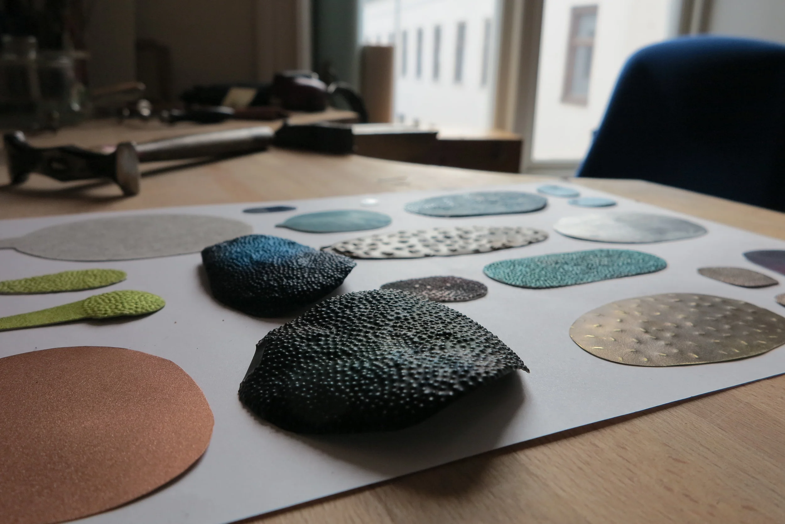 “I’m attracted to the qualities in different kinds of metal that make them perform in various ways, depending on the treatment. I see my work as collaboration between these qualities in the material and my own technical skills. Im searching for the unexpected and aiming to set up a poetic jewellery show speaking to spectators senses rather the to the intellect.”